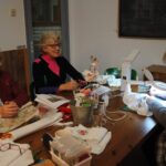 Op zaterdag 27 januari was er weer een Dear Rine bijeenkomst bij Borduurblad in Maarssen. Wel 35 dames waren aanwezig om elkaar te ontmoeten en veel borduurtips en ideeën aan elkaar uit te wisselen. Rielies van borduurblad heeft ons allen hartelijk welkom geheten en we hebben genoten van haar gastvrijheid en de heerlijk lunch die ze voor iedereen had klaargemaakt. Natuurlijk heb ik alle aanwezigen aan het werk gezet met een nieuw patroontje. Het is een matrasspeldenkussen geworden in voor mij groene kleur. De basis is een zelfde 8 hoek als van de SAL van 2018.