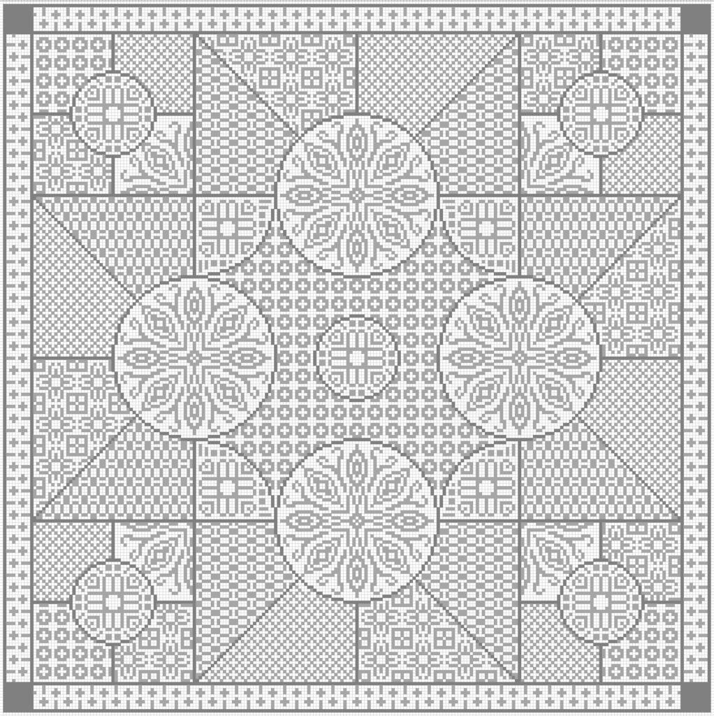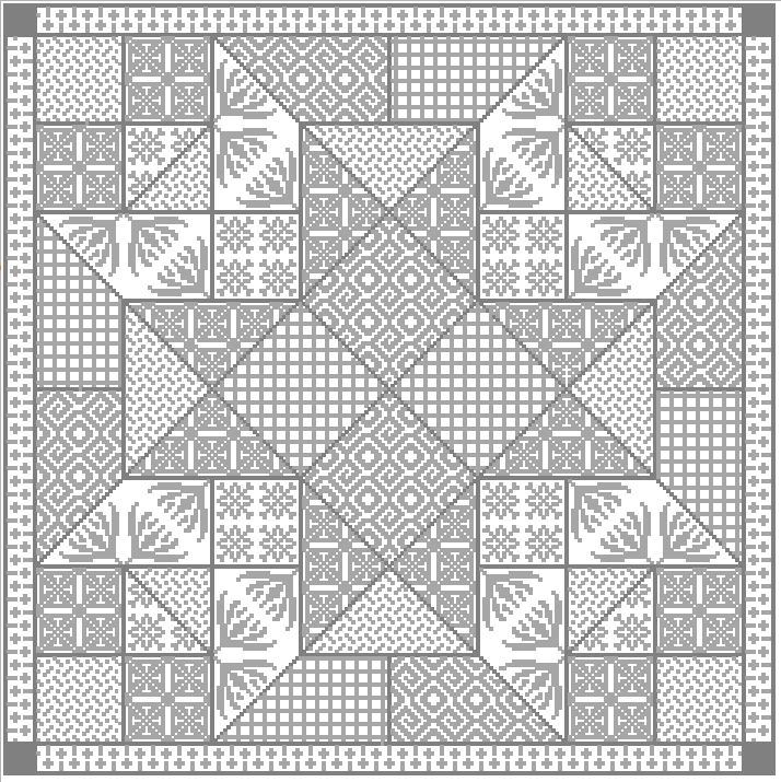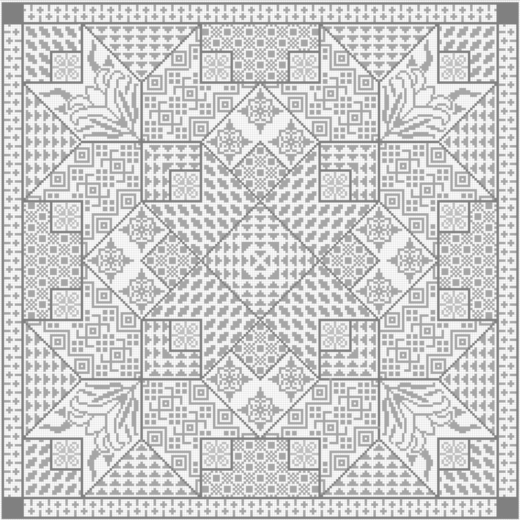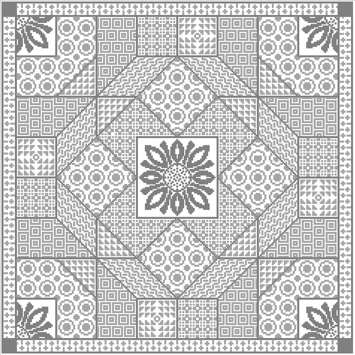 Ik maak hem op 28 count Jobelan en dan zal deze 124x124cm worden.
